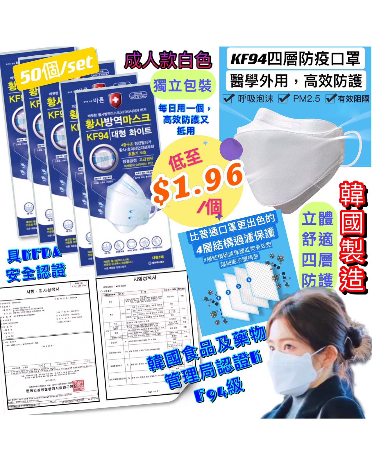 KF94 四層防疫口罩 (50個/盒)