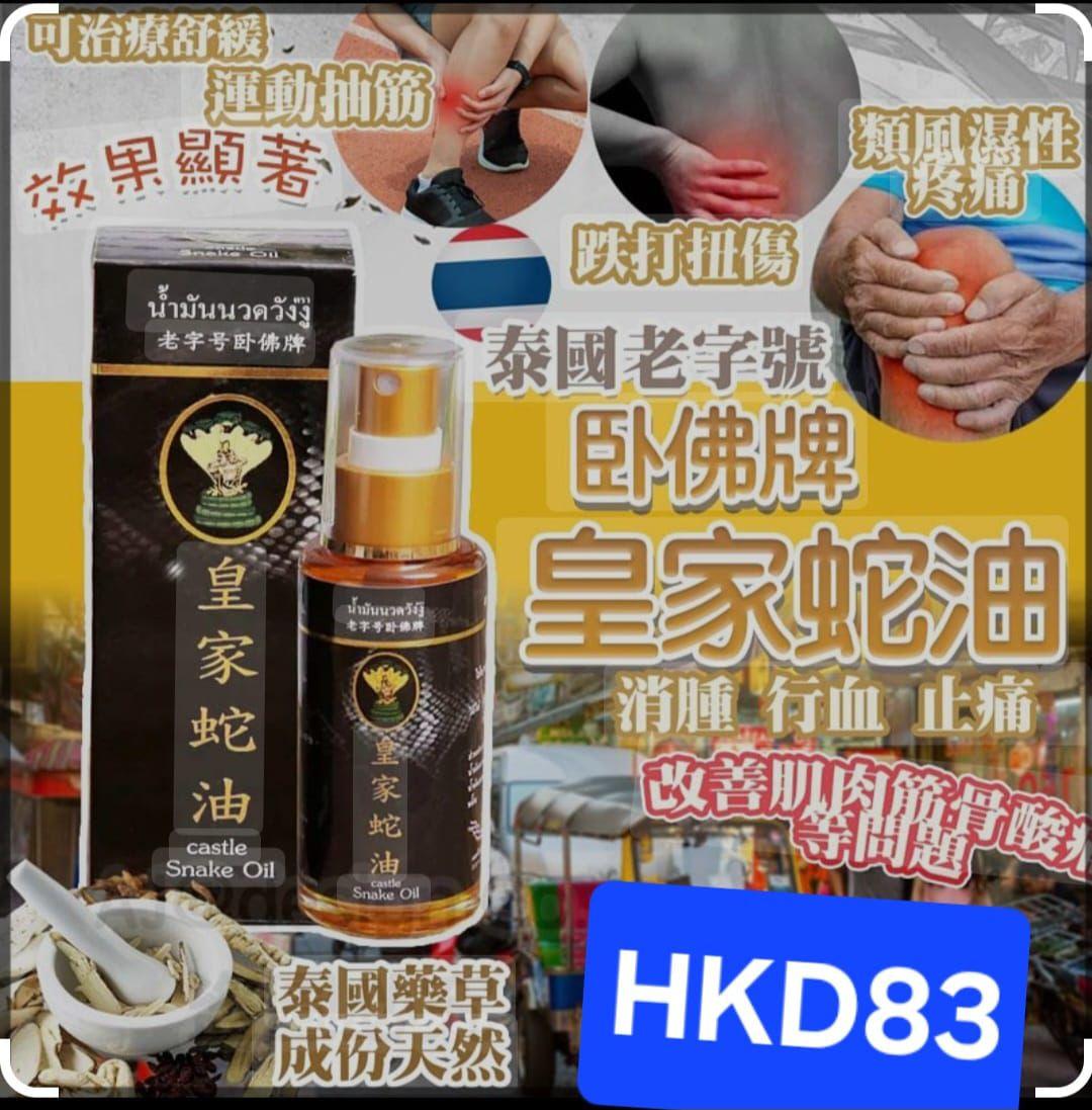 - 泰国老字号卧佛牌皇家蛇油,适用坐骨神经病变引发的腰椎臀部大小腿以及后跟健疼痛,手脚麻木,腰酸背痛,肌肉筋骨酸痛,关节炎,颈椎病,肩周炎,风湿病,痛风,跌打扭伤,中暑抽筋,淤血等等。药力增强,温热感,有止痛,消肿,行血之功效。